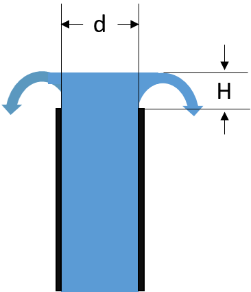 for H greater than 1.4d, and whichever of the two calculated Qs is less for H in between 0.37d and 1.4d (where these estimates are the least reliable). Reference: U.S. Bureau of Rec. Water Measurement Manual.